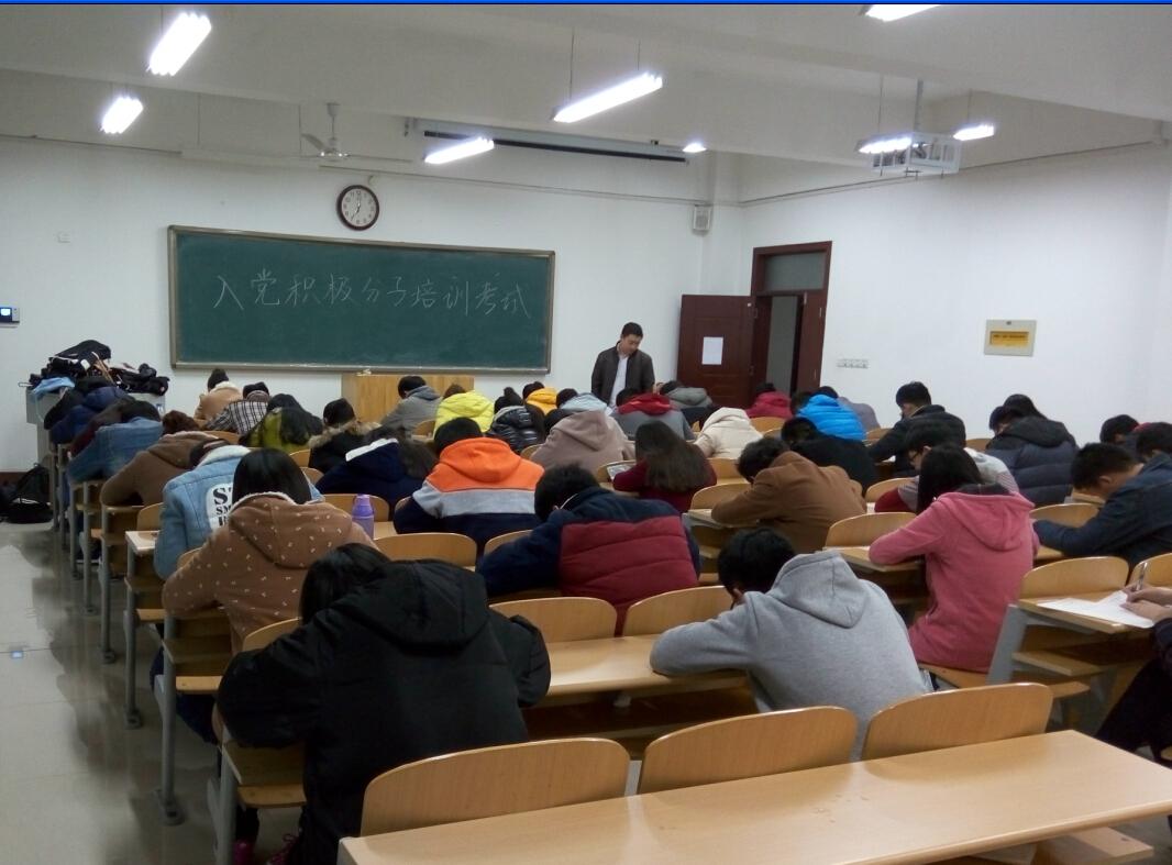 11月13日晚19:00,我院2015年度入党积极分子培训结业考试如期举行。本次考试共有102名学员参加,设考场2个,每个考场配监考老师2人。