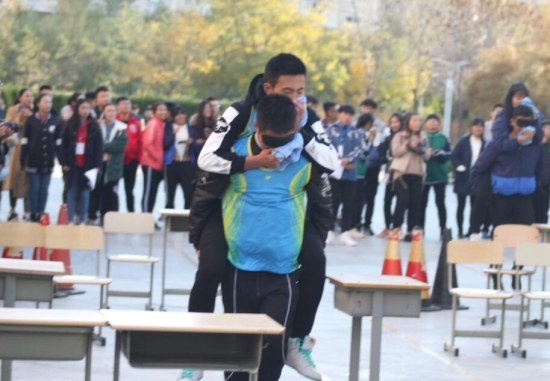 消防运动会上,我院11名运动员参与了“水带去哪儿”“你画我猜”“穿越火线”“水盆接力”四个比赛项目,通过模拟火场险情,设置突发障碍,使同学们对火灾等突发情况的处理有了进一步的了解,强化了学生消防安全意识,达到防患于未然的目的。我院运动员积极参与、沉着稳重、团结互助、努力拼搏,展示了学生较好的心理素质与协作精神。