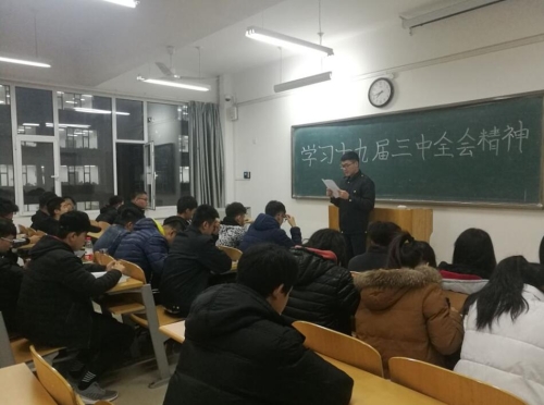 3月18日晚上,英国365集团以团支部为单位,在各班教室举行主题团日活动,本次主题团日围绕学习党的十九届三中全会精神展开。