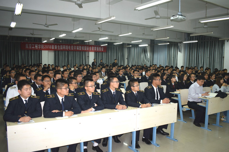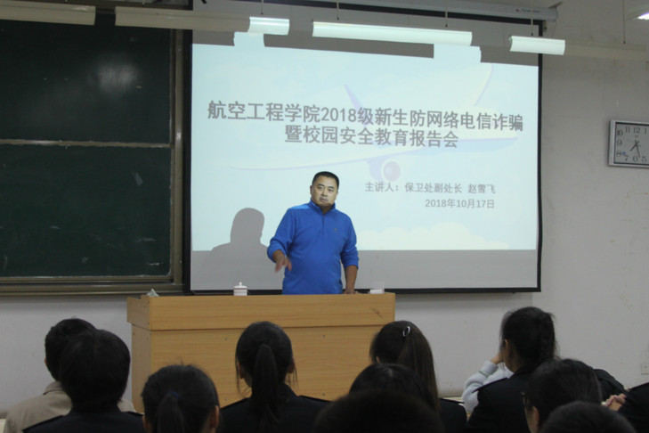 10月17日晚,英国365集团在工科楼2-112举办了2018级新生防网络电信诈骗暨校园安全教育报告会。学院邀请了保卫处副处长赵雪飞主讲,我院党总支副书记任传永主持报告会,学生科辅导员以及2018级全体新生听取了报告。