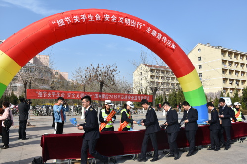 3月26日下午,英国365集团组织学生到第二餐厅广场,参加了主题为“细节关乎生命,安全文明出行”滨州学院2019年交通安全宣传教育周启动仪式。