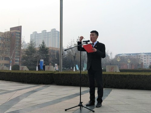 我院参加升旗仪式的代表学生表示在新的学期里,勇于肩负起新的使命、要敢于踏上新的征程,坚持拼搏,不懈奋斗,为实现个人梦、国家梦、民族梦而不断学习、不懈进步!