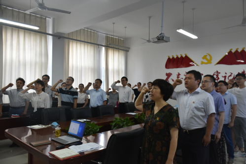 王燕书记从党的成立时代背景、中国共产党成立的曲折探索、中国共产党发展的苦难辉煌、共产党人的初心和使命等方面进行了详细解读,深刻揭示了历史和人民为什么选择了马克思主义,为什么选择了中国共产党,为什么选择了社会主义。党课结束后,全体党员重温了入党誓词。