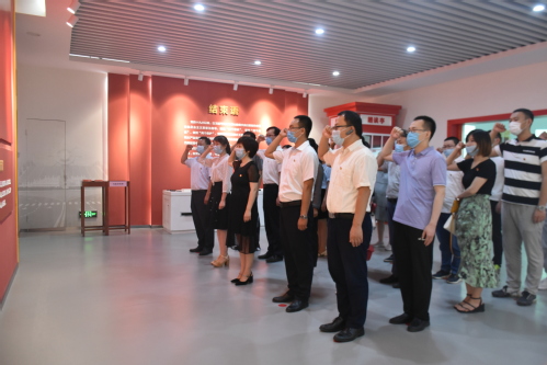 在党旗面前,党员干部重温入党誓词,不忘初心,牢记共产党员的政治责任和历史使命。在初心唤醒室,党员干部纷纷临摹廉语,切记“掌权为公、用权为民”,“君子行廉以全其身,守清以保其身”。
