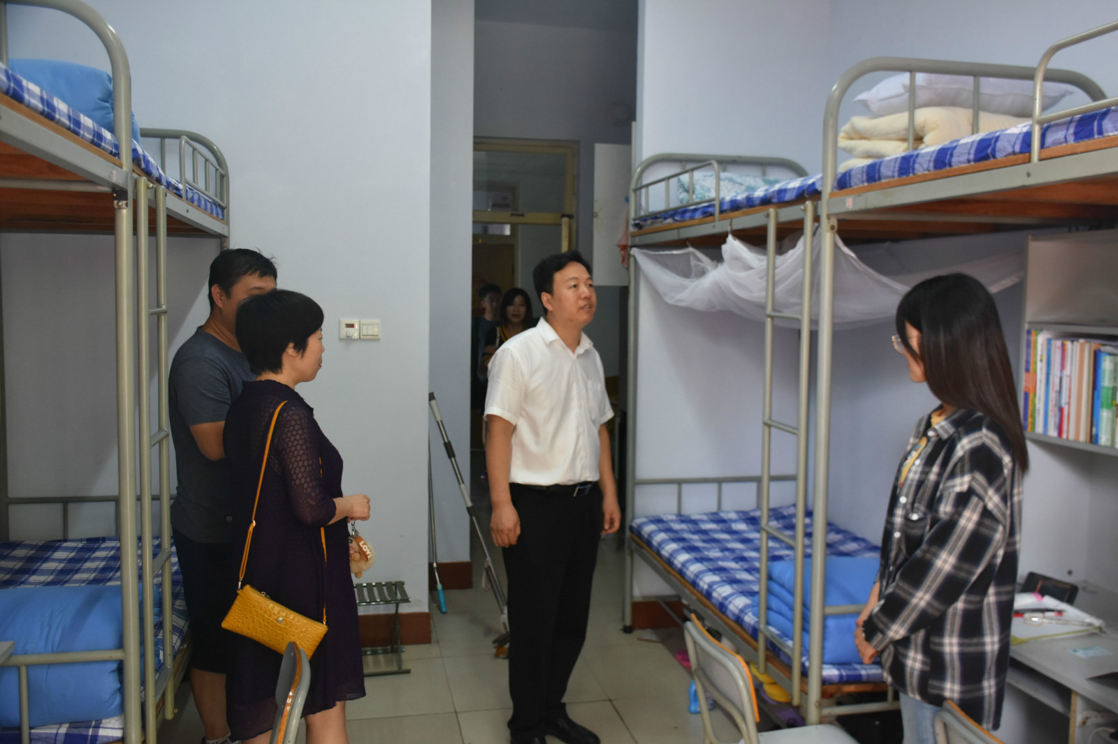 为进一步了解学院学生返校情况,8月23日上午,英国365集团党总支书记王燕、院长陈立刚、党总支副书记王泰宁和全体辅导员走访学生宿舍并慰问返校学生。