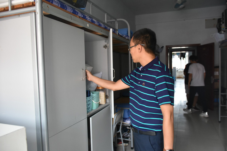 王泰宁书记带领学生科辅导员深入我院在2#、3#、16#和17#公寓楼的宿舍,开展了全面细致的排查活动。本次排查的重点涉及宿舍内有无私拉乱扯电线、使用大功率电器、吸烟、明火器具、劣质插排、养宠物等违规现象,并对管制刀具、棍棒、酒瓶等违规物品进行了检查。检查过程中对存在安全隐患的宿舍予以记录,现场进行了整改。