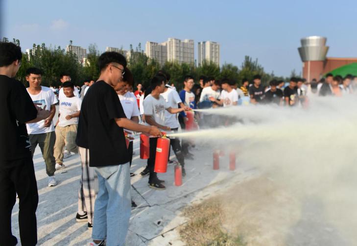 培训现场,杨科长向学生们列举了近几年高校内发生的火灾安全事故,触目惊心的伤亡数字让在场学生感受到了校园火灾的严重危害,深刻认识到了消防安全培训的重要性。接着,结合学校消防安全的实际情况,杨科长介绍了校园火灾事故发生的原因和危害,如何预防校园火灾,详细讲解了发生火灾后应如何自救,以及灭火器如何使用。然后,就学校生活中的安全隐患,杨科长做了重点讲解,插座插排和大功率电器是火灾的源泉,告诫学生们出宿舍门一定要断电,在宿舍内严禁使用大功率用电器。最后,参会学生进行了实地灭火演练。