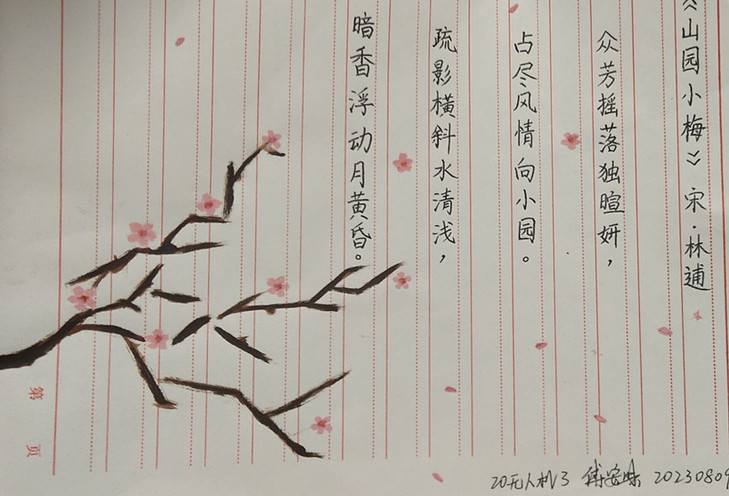 本次征稿要求书写健康向上的古今诗词、联、赋、格言,提倡自作诗词,工具、书体、形式不限。活动一经发布,便得到学生们的积极响应,共收到作品100余份。上交的作品中,字体不一,各具特色,形神兼备,或苍劲有力,或隽永飘逸,或清秀雅致,或端正整洁……一幅幅作品中蕴含了学生对书法的热爱。经过初赛、决赛两个环节的评比,傅安琪、李佳乐、鲍广瑞等同学分别荣获一二三等奖。