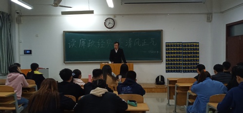 与圣贤为伴,与经典同行;与书为友,与大师对话。11月15日晚,学院召开了“读廉洁经典,谈清风正气”主题班会。学院为本次活动专门开出了“廉政书单”,书单中既有廉洁经典、党员干部警示教育类书籍,又有传播优秀文化、聚焦社会热点的书籍。班会上,师生围绕主题,现场交流各自读书心得,大家将廉洁文化建设与学风、班风、舍风建设进行了有机结合,强化了学生的廉洁意识,传播了廉洁修身的文明理念。活动在每位学生的心中种下廉洁的种子,引导他们牢固树立廉荣贪耻的人生理念,扣好人生的第一粒“扣子”。