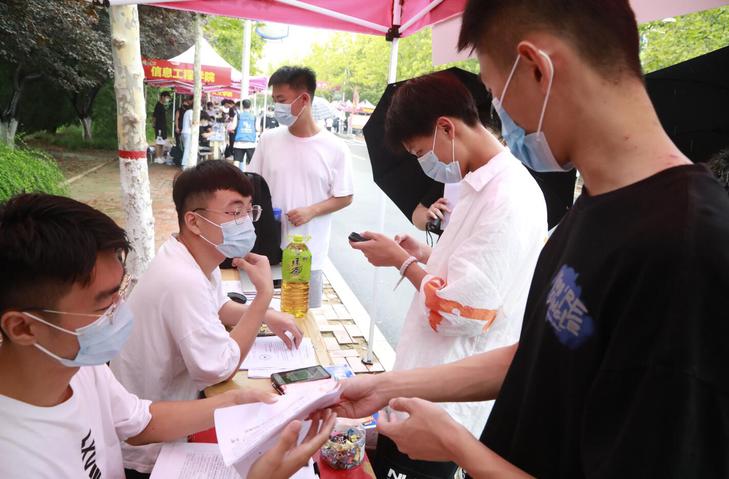 迎新工作如火如荼、秩序井然,到处都是忙碌的身影。在迎新志愿者的引领和帮助下,新生逐一完成身份核验、缴费核对、档案和各类承诺书提交、住宿通知单领取、宿舍入住等手续,顺利办理完成入学手续。