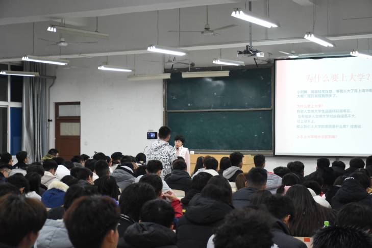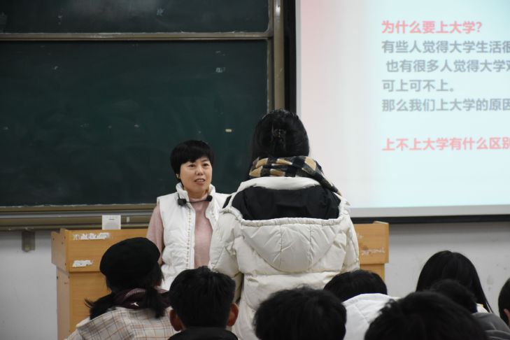 王书记以我们“为什么要上大学”“上大学与不上大学有什么样的区别”引出话题,并启发同学们进行思考、讨论和交流;接下来,王书记分别从学习、心态、视野、平台、见识、就业机会等方面进行了详细地对比,她勉励同学们通过大学实现自身价值、得到社会认可、提升专业能力;之后,王书记围绕“如何读大学”这一主题,从学习专业知识、拓展人际关系、收获爱情、学会尊重、提升自我、为今后发展提供平台、为下一代奠定基础六个方面分别讲解,给予同学们学习、生活、学业规划等方面的实用建议。
