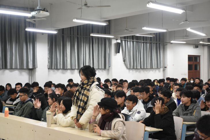 2月27日晚,英国365集团党总支书记王燕在工科楼2-112教室为2021级学生带来一堂特别的思政课。