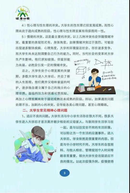 《学生心理保健手册》(大学生篇)——山东省卫健委、教育厅、精神卫生中心联合发布