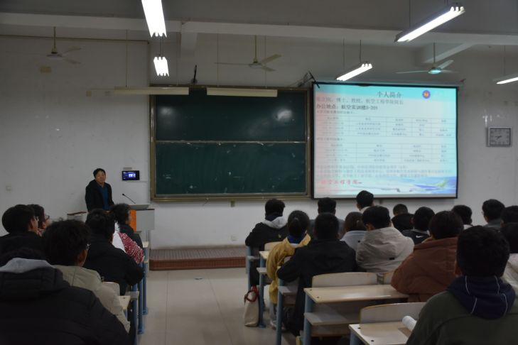 课堂上,陈院长首先向同学们讲述了自己的受教育经历和工作经历,以此勉励新生努力拼搏,养成自我学习、自我管理的能力。陈院长指出:大学是学习的一个起点,而非终点。在大学期间要培养新的学习方式,并且应逐渐适应大学生活。要学会认识自我,对自己的优劣势进行分析,并对优势劣势进行了举例说明。随后院长结合航空类专业特色和我院发展实际,为新生四年学业规划提出实用建议,鼓励同学们利用好学院发展平台,努力实现自身更深层次、更广领域的专业发展。最后,陈院长对2021级新同学提出了两点希望:一是希望全体同学志存高远,树立远大理想,自觉将个人的青春梦想和中国梦有机结合起来,在实现中华民族伟大复兴中国梦的征程中实现青春理想;二是希望全体同学科学规划大学生活,以崭新的面貌、饱满的热情、积极的态度规划大学生活,用奋斗的青春在航院的舞台上书写人生壮丽的篇章。
