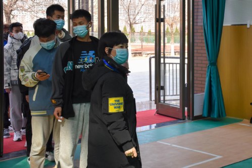 校外的党员教师,在做好线上教学的同时,也积极投身社区疫情防控一线。在接到学校党委组织部《关于切实发挥党组织和党员作用坚决打赢新冠肺炎疫情防控阻击战的通知》号召后,教工党支部书记冯伟伟同志第一时间带领高海阔、高坤、马国利、郑文、穆文英、李爱萍等6位党员教师在开展核酸检测志愿服务工作。老师们负责组织现场居民排队、填写信息和维持秩序。冯伟伟老师说,“大疫当前,作为党员,应该主动为社会、为社区做点力所能及的事情。社区工作者们非常辛苦,我们希望能够多为他们分担一些工作。”朴实无华的话语,体现的是一个共产党员的责任和担当!