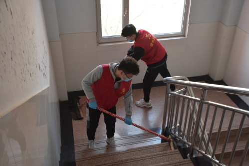 入党积极分子和团员青年自发成立了“志愿服务小分队”,为隔离同学提供服务。他们分工明确,各司其职,男生组成“送餐小分队”,专门负责每天早、中、晚三餐的配送。女生成立了“生活需要服务小分队”,每天提供购买水果、牛奶、生活用品、跑腿等其他生活服务,尽量使隔离区的同学一切生活如常。因防疫需要,位于17号公寓楼的同学需要进行宿舍整合。得知此消息后,毕业生同学主动报名:“老师,拆我们宿舍吧,为了疫情防控,我们一切听从学校安排。”面对四年的同窗情,同学们虽心有不舍,但仍毅然决然插空搬迁到空床位宿舍。在志愿者的帮助下,一个小时之内就完成了宿舍整合和搬迁工作,并将宿舍保洁消杀到位。