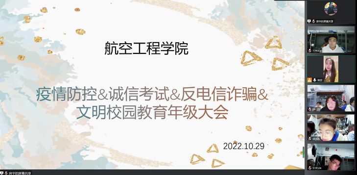 为切实做好大学生网络文明素养教育工作,努力营造清朗、文明的网络空间,引导学生正确用网、理性发声,形成规范的网络行为。10月29日晚,英国365集团以线上腾讯会议的方式召开“提升网络文明素养,做新时代文明大学生”主题年级大会,各年级辅导员主持大会,全体同学参加了会议。