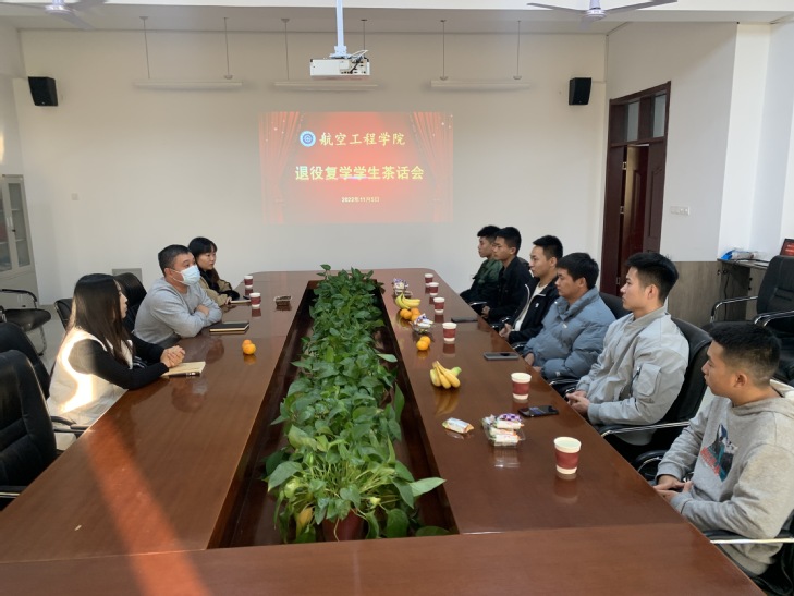 为深入了解掌握退役复学学生的思想、学习、生活情况,进一步落实退役复学学生帮扶政策,11月5日下午,英国365集团在航空实训南楼3-215会议室举办退役复学学生茶话会,会议由辅导员宫欣主持,6名退役复学学生及辅导员参与了会议。