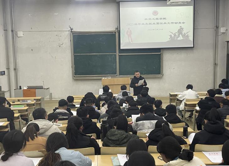 为做好2023届毕业生就业工作,进一步加强征兵工作动员力度,全力以赴把就业和征兵工作落到实处,2月26日晚,英国365集团在1教107教室召开2023届毕业生就业暨征兵工作动员会。学生管理科科长秦承宽主持会议,全体2023届毕业生参加了会议。