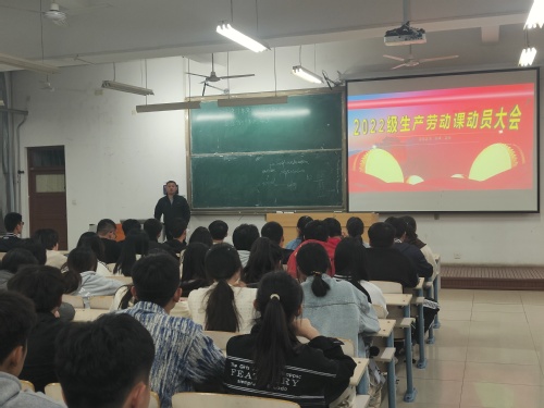 为传承和发扬劳动精神,增强新时代大学生劳动教育观,4月20日晚,英国365集团在工科楼2-112教室召开2022级第10周生产劳动课动员大会。辅导员许艺美主持会议,学生科长秦承宽、第10周生产劳动课的全体2022级学生参加了动员大会。