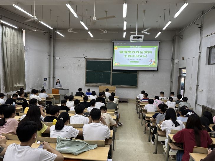会上,辅导员老师传达了学校放假通知和有关要求,带领大家学习了我校关于安全管理规定和安全常识,通过多媒体课件,结合近期发生的热点真实案例,重点围绕防疫、防火、防邪教、防传销、防溺水、防踩踏、防电信诈骗、防非法传教、防食物中毒、防交通事故、防灾害事故、防人身伤害等各类安全问题进行强化教育,增强学生的安全意识和法治观念,提高学生防范安全事故的能力。辅导员老师重点加强了学生的防溺水安全教育,通过播放“珍爱生命,严防溺水”宣传视频,以典型事例警示学生,告诫学生假期要严格做到防溺水“六不”、“四牢记”,远离危险水域,做好安全防范。辅导员老师叮嘱同学们,要利用暑假时间与父母多沟通、常交流,有任何心理困惑或相关困难都可以联系学校心理咨询中心寻求帮助。大会最后,辅导员老师就离校后学生公寓安全注意事项进行了相关强调。