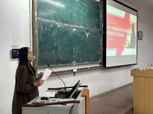 为扎实做好国家奖助学金评选工作,增强学生资助工作的规范性和公平性,着力提升资助育人成效,10月23日晚,英国365集团在工科楼2-112召开2023年国家奖助学金评选政策解读培训会,资助联系人宫欣主持会议,全体辅导员、学生干部参加培训会。