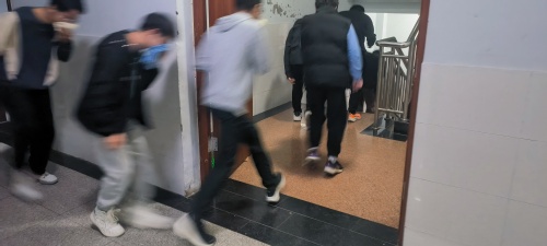 随着演练总指挥一声令下,此次消防应急演练正式开始。寝室的学生在听到火灾警报后,立即在老师的有序组织下,从安全通道口处疏散,学生们迅速拿起湿毛巾、捂住口鼻、弯着腰,按照事先预定的逃生路线有序疏散至安全区域,自觉遵循预定的方案,有序、紧张地进行,并在规定的时间内完成了紧急疏散工作。疏散出来的师生在警戒组的指引下到达预先指定的位置集合。大家在亲身实践中体验并掌握人员疏散、自救互救等正确的做法,学生们受益匪浅。