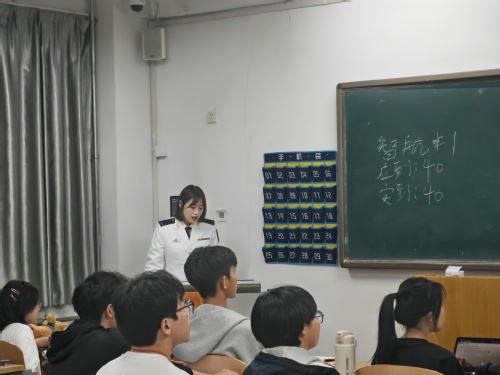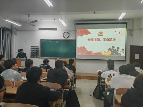 宣讲会上,7名退役复学学生结合自身军旅经历,从部队作息、训练内容和日常活动等方面展示了军队生活,以自身经历为出发点,说明军旅生涯对个人成长的深远影响。围绕入伍政策,7名退役复学学生从报名流程、体检事项、优惠政策等方面详细介绍,解答同学们在职业发展和升学辅助等方面的疑惑,倡导同学们积极响应国家政策,激扬青春梦想,矢志报国图强。