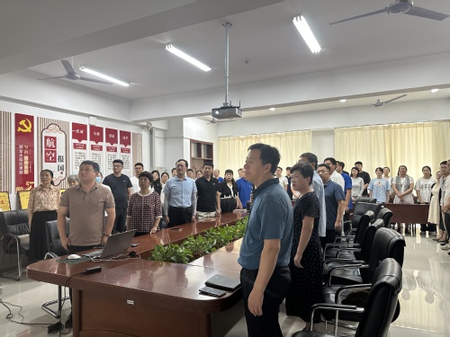 观看过程中,师生们神情专注,严肃认真。当庄严的国歌声通过屏幕传来,全体师生自发起立,齐声高唱,雄壮的旋律在会议室的每一个角落回荡。大家全神贯注地聆听着习近平总书记的重要讲话,深刻领会抗日战争胜利的伟大历史意义和精神内涵。