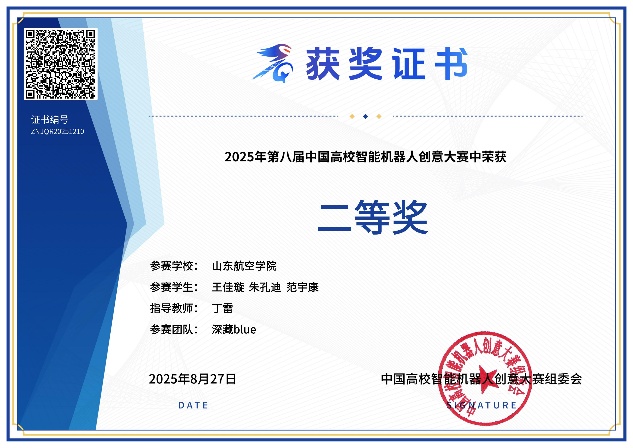 中国高校智能机器人创意大赛是国内高校机器人领域具有较高影响力与广泛参与度的权威赛事之一,旨在推动机器人技术与人工智能的创新应用,促进跨学科融合与人才培养。经过层层选拔,我院由陈泽逸、王朝磊组成的代表队凭借出色的创新设计与技术实现,在“无人机格斗”赛道中斩获全国一等奖和三等奖;另有于双宁团队、王佳璇团队在“创意类机器人”赛道获二等奖。