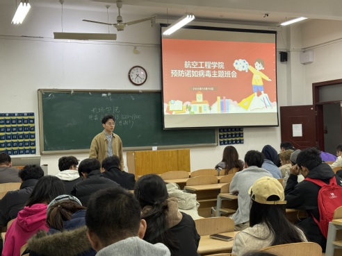 班会上,各班班主任结合当前季节特点,重点围绕流感、支原体肺炎、诺如病毒感染性腹泻等秋冬高发传染病的传播途径、症状表现及潜在危害展开讲解。班主任通过讲解诺如病毒校园集中暴发案例,要求同学们加强日常卫生管理,关注自身健康状况,若出现身体不适(特别是恶心、呕吐、腹痛、腹泻等),立即告诉辅导员,并前往正规医院诊治,做到早发现、早隔离、早治疗。针对诺如病毒的预防措施,班主任强调:一要注意个人卫生,勤洗手是阻断病毒传播的首道防线。二要高度重视饮食卫生,不吃生冷食品和未煮熟煮透的食物,尽量减少到校外餐厅就餐,特别是无牌无证的街边小店,从源头上杜绝“病从口入”;三要保持环境卫生,保持教室和宿舍的通风良好,定期对公寓进行全面消毒,杀灭病毒。