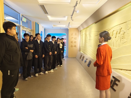 走进校史馆大门,一幅幅泛黄的老照片、一件件承载记忆的实物展品、一段段生动的文字记载,瞬间将同学们带回学校艰苦创业的岁月。讲解员以“时间轴”为主线,系统梳理了学校在不同历史时期的办学特色与发展成就:从早期为航空企业输送技术骨干,到如今形成 “航空工程+智能制造” 融合发展的学科体系;展厅内的 “功勋飞机模型展柜”“优秀校友事迹墙” 更是成为同学们驻足的焦点,当听到多名校友在国产大飞机研发、航天工程等国家重大项目中担任关键角色时,现场不时响起阵阵掌声,自豪感与使命感在学生心中悄然升腾。