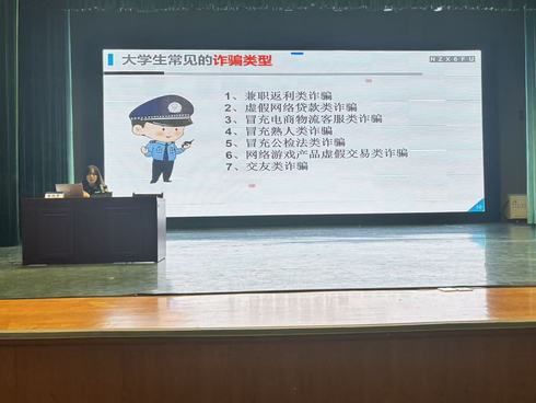 为切实提升2025级新生的防诈骗意识和自我保护能力,有效遏制高校网络电信诈骗案件高发态势,11月10日上午,航空工程学院在学苑会堂举办防诈骗教育专题报告会,报告会特邀彭李派出所民警张晓芳警官主讲,2025级全体新生及全体辅导员参加了会议。
