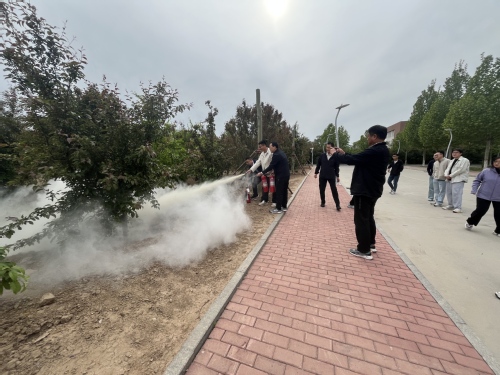 演练环节,张老师现场示范了干粉灭火器的正确使用方法,详细拆解“提、拔、握、压”四字操作口诀,强调了干粉灭火器的适用场景和注意事项,并组织师生代表逐一实操演练,确保每一位参与者都能熟练掌握灭火技能。同时,张老师还讲解了火灾疏散逃生的核心要点,提醒大家疏散时要弯腰低姿、用湿毛巾捂住口鼻,听从引导、有序撤离,杜绝拥挤踩踏。